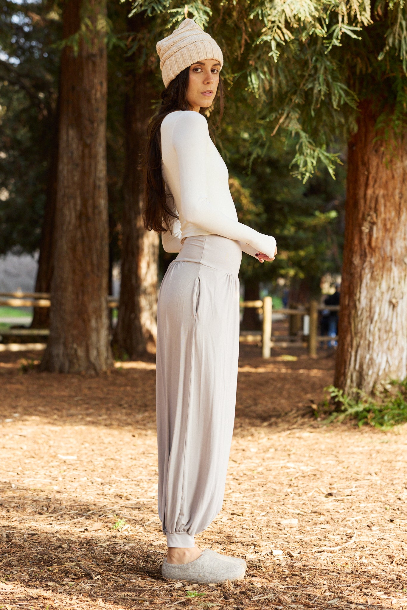 Every piece is made from premium, plant-based or naturally derived fibers selected for softness, breathability, and comfort. Many of our fabrics include TENCEL™ lyocell or other sustainable blends made in small batches. Each garment is dyed and finished in Los Angeles, giving it that signature Purusha feel that is buttery, lived in, and completely unique.