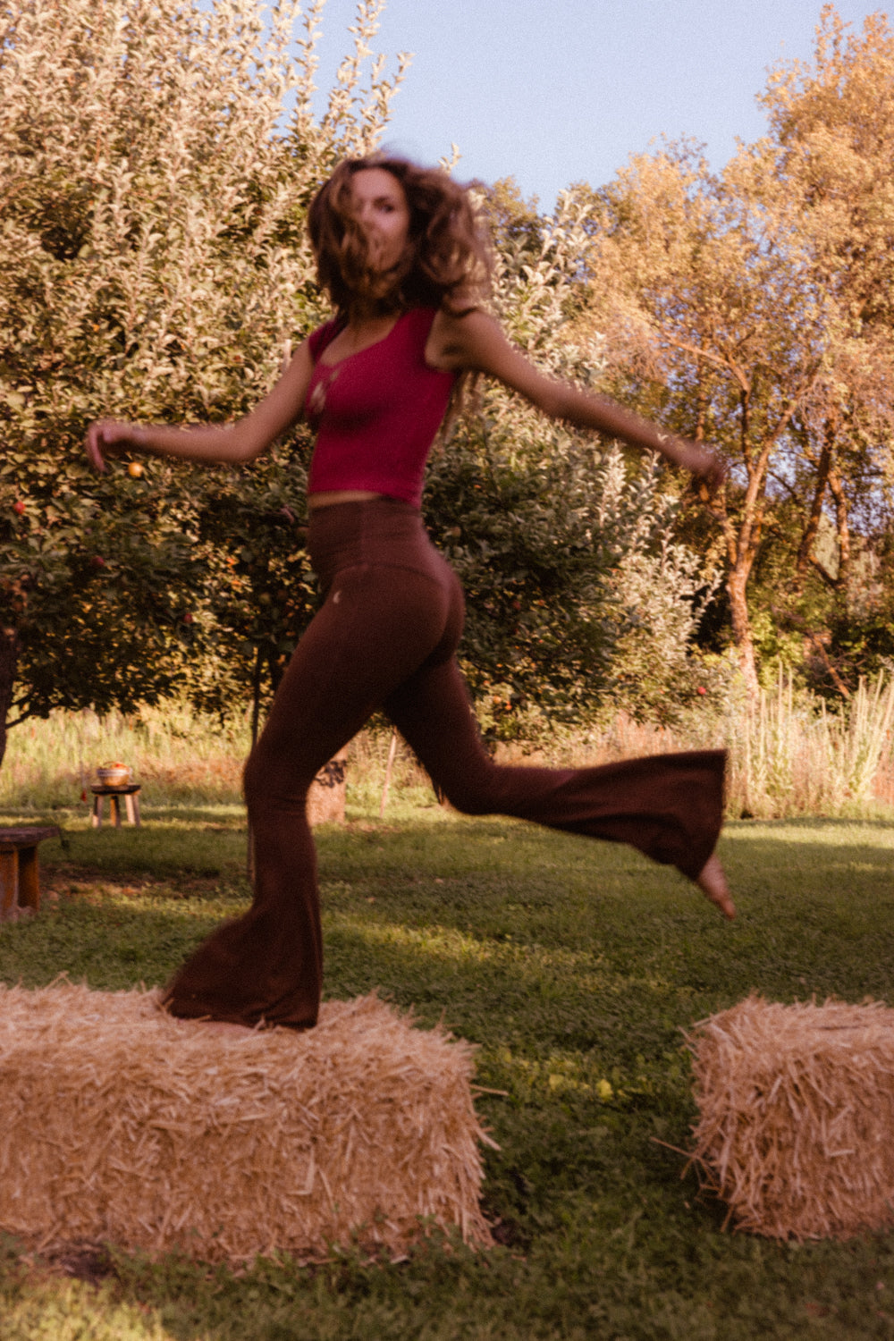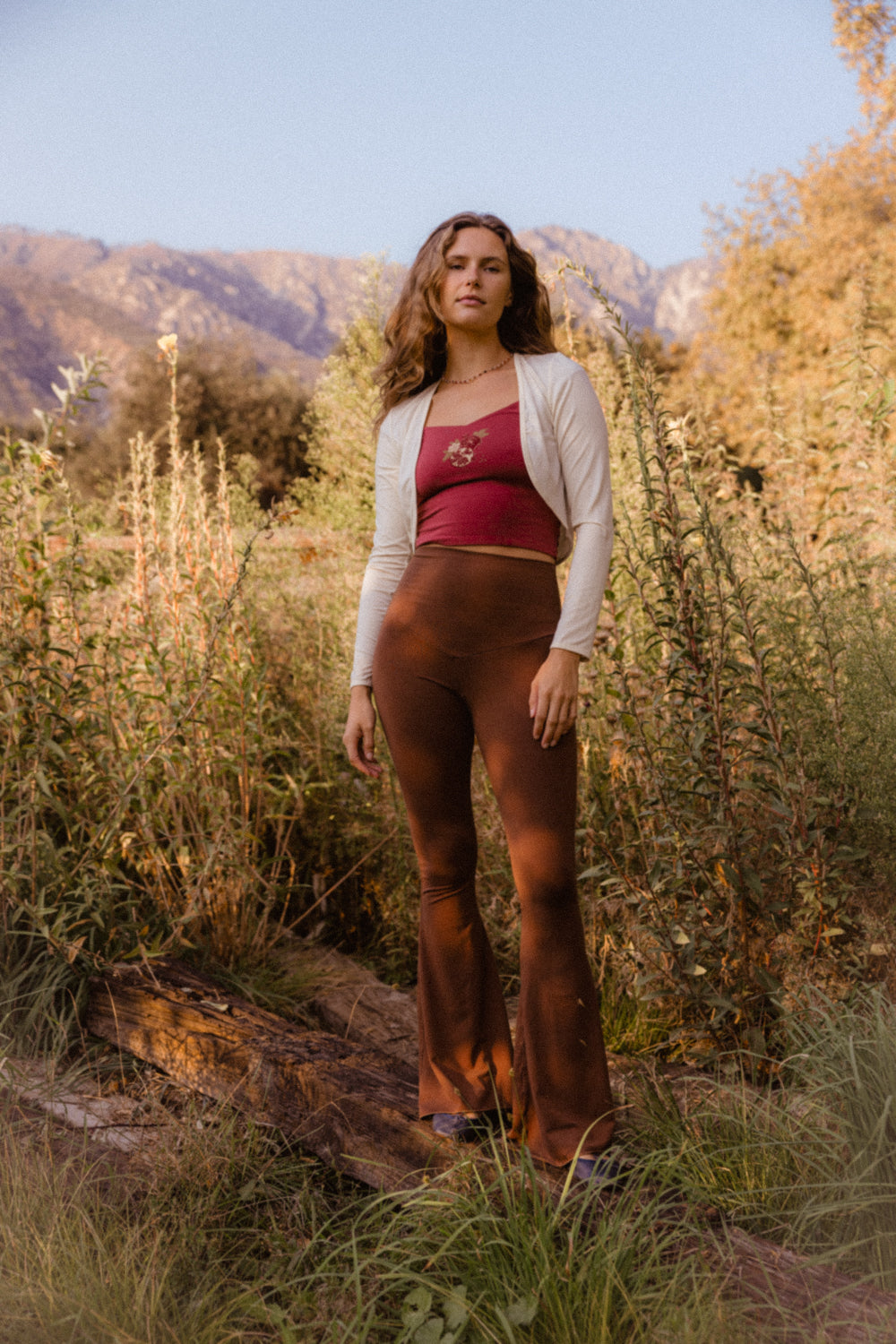 We use plant-based fabrics like TENCEL™ lyocell, ECOVERO™ viscose, and organic cotton, blended with Creora® bio-based spandex for gentle stretch. While the spandex still contains some petroleum, it’s partially derived from renewable sources—making it a better option than traditional synthetics. The result: soft, breathable, lower-impact clothing that feels as good as it is.