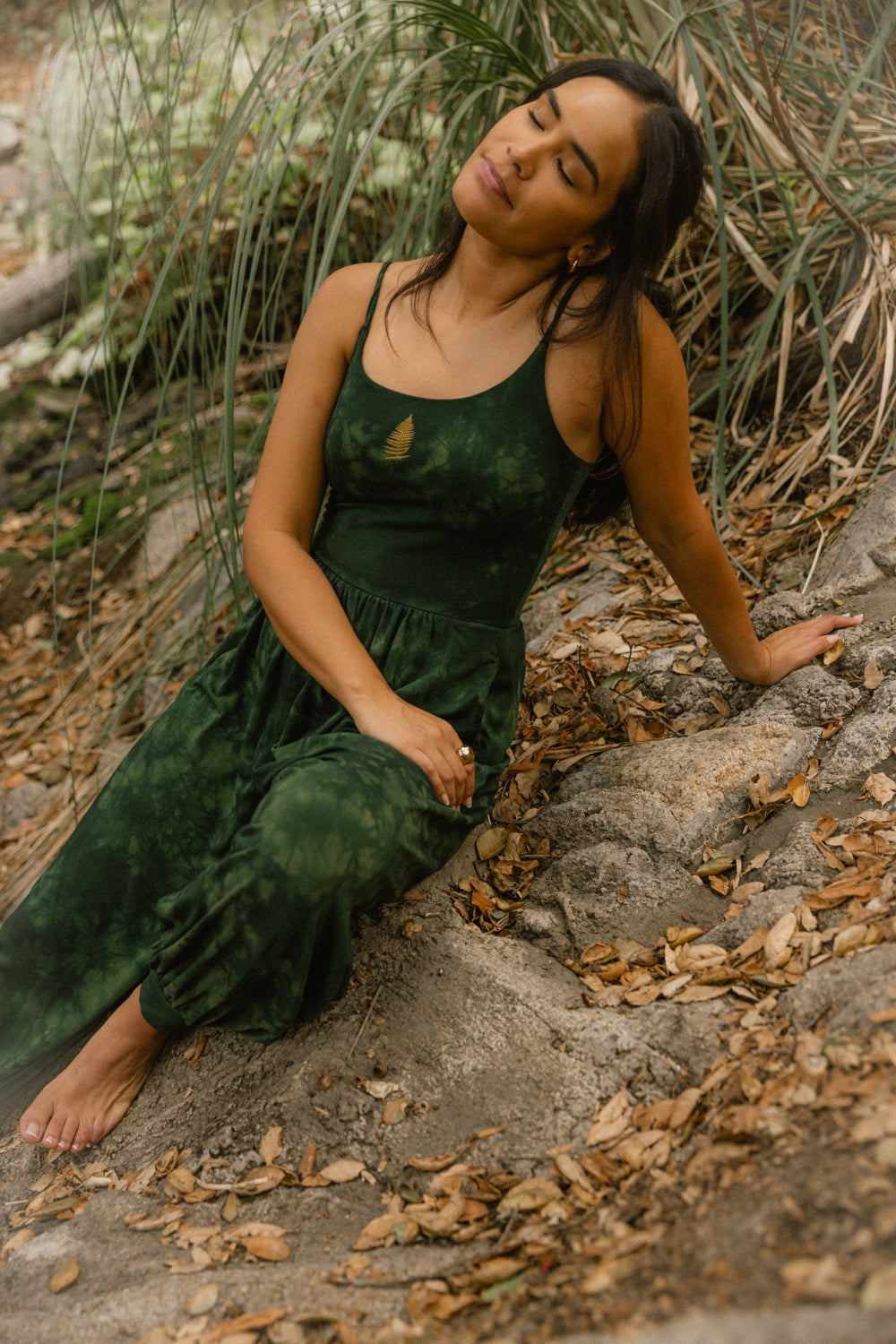 We knit our fabrics in Los Angeles, work with a GOTS-certified dye house, and print exclusively with water-based inks. Every design is created in collaboration with female artists, and all of our production partners are small, family-owned studios located within a 25-mile radius of downtown LA, bringing our vision to life with care and integrity.