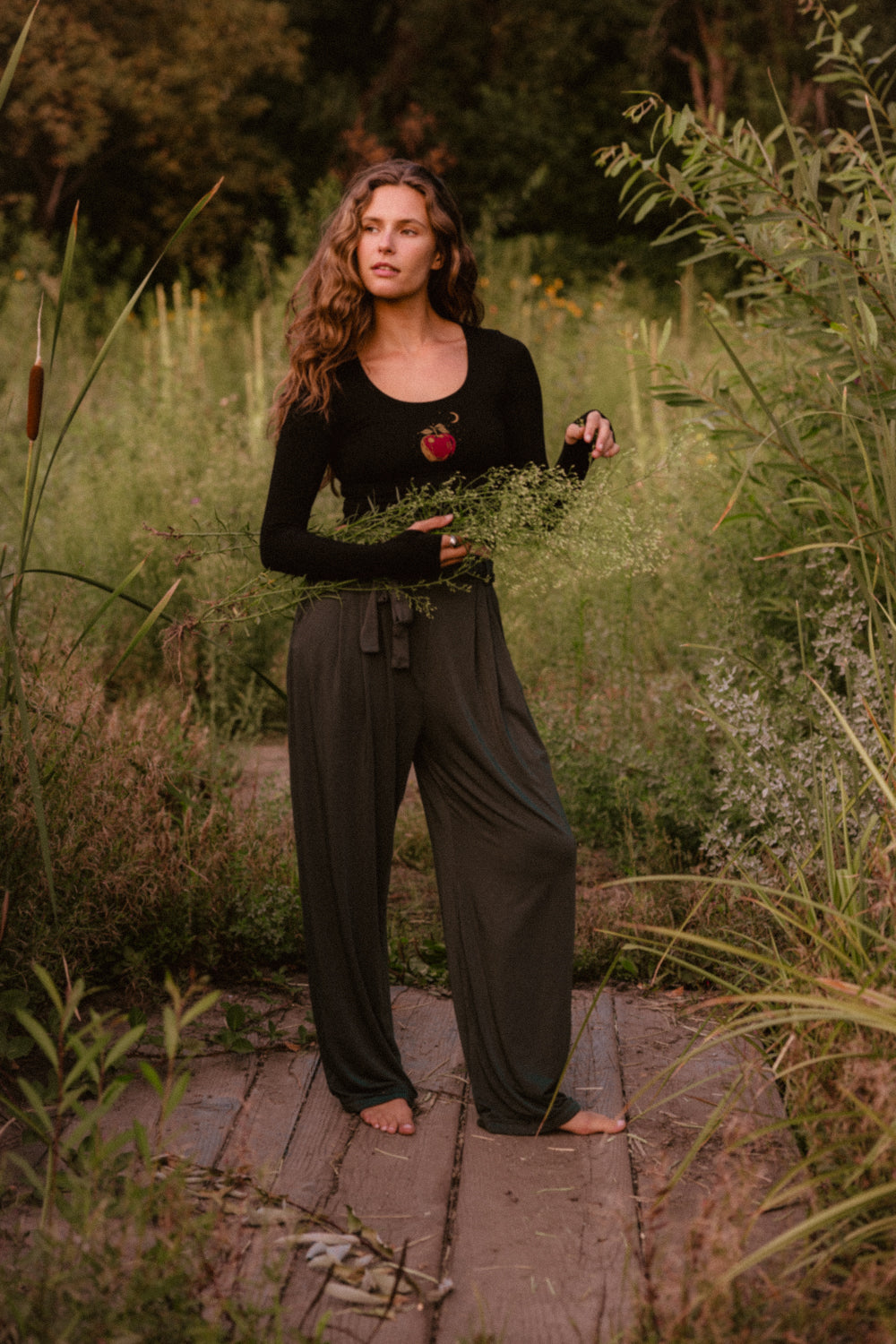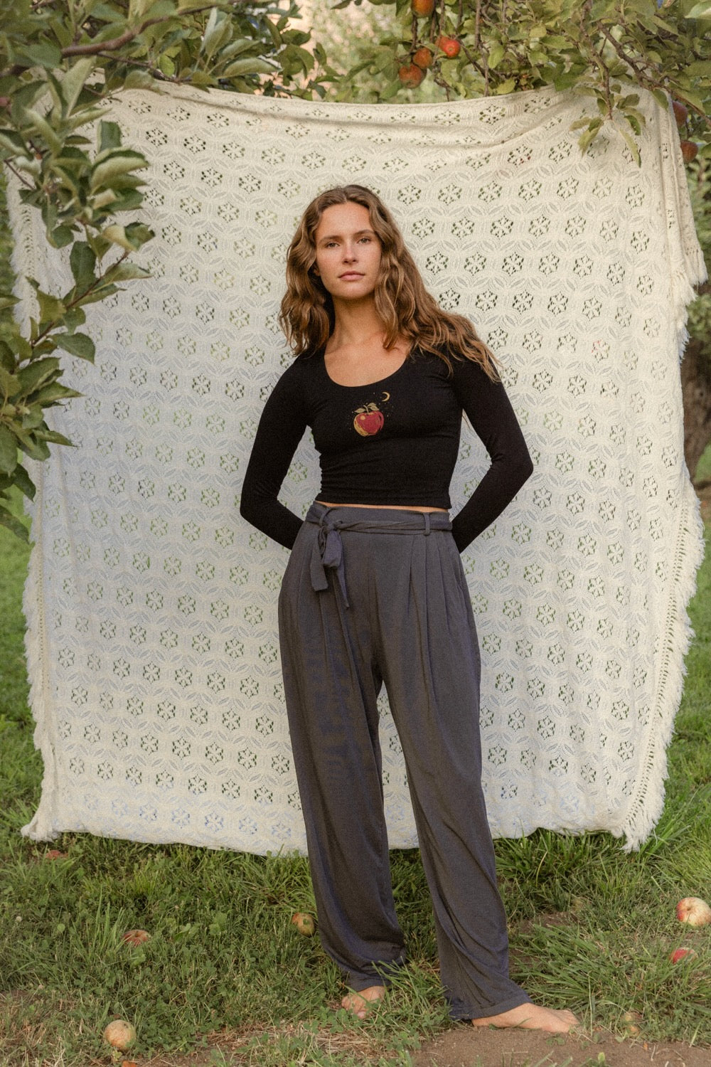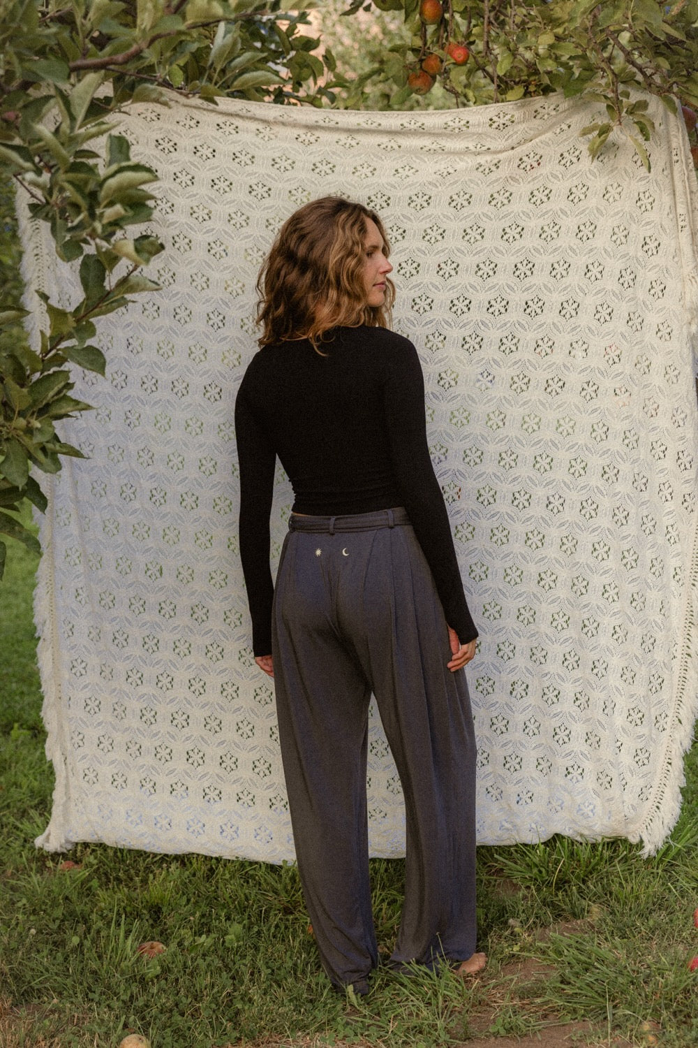 We use plant-based fabrics like TENCEL™ lyocell, ECOVERO™ viscose, and organic cotton, blended with Creora® bio-based spandex for gentle stretch. While the spandex still contains some petroleum, it’s partially derived from renewable sources—making it a better option than traditional synthetics. The result: soft, breathable, lower-impact clothing that feels as good as it is.