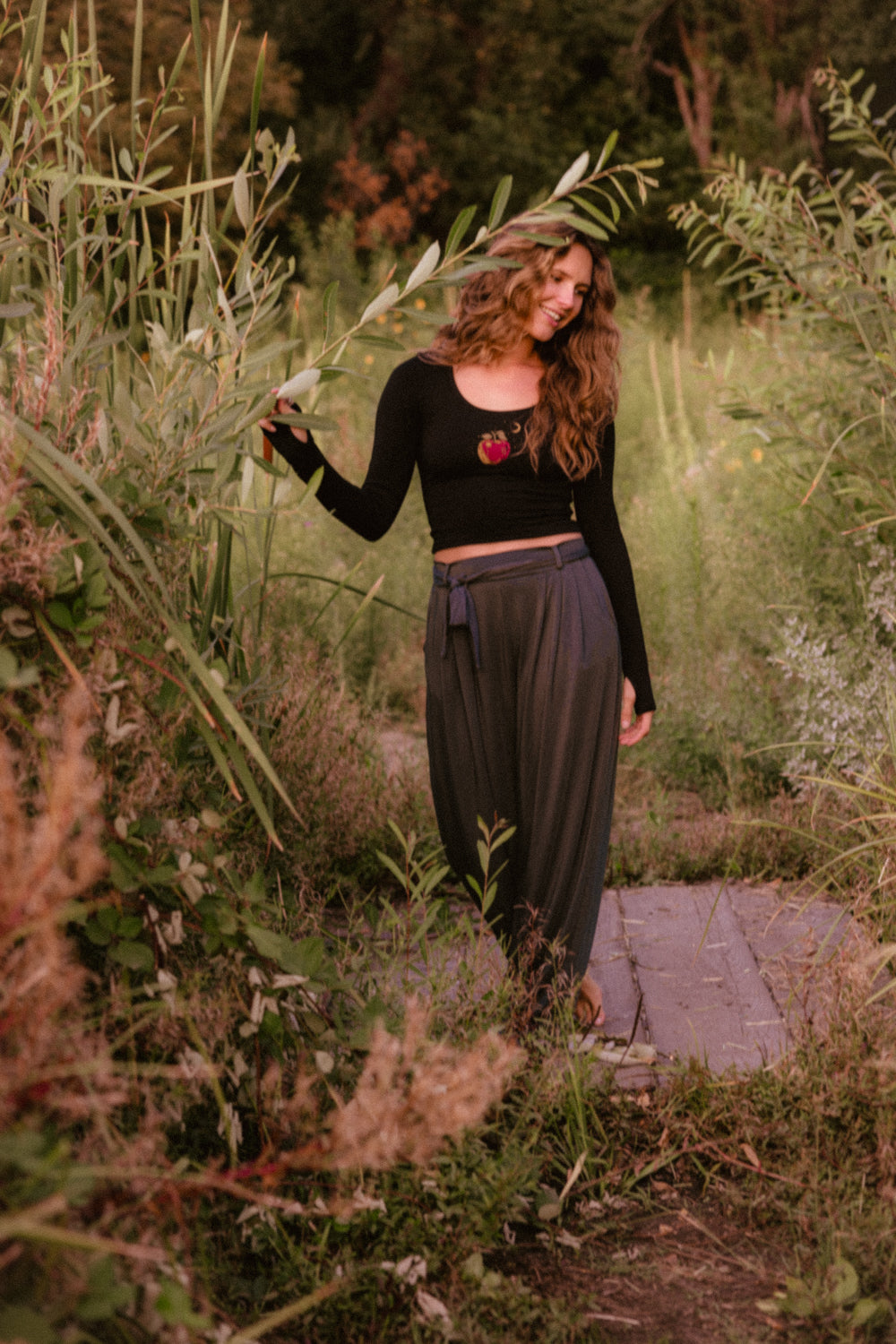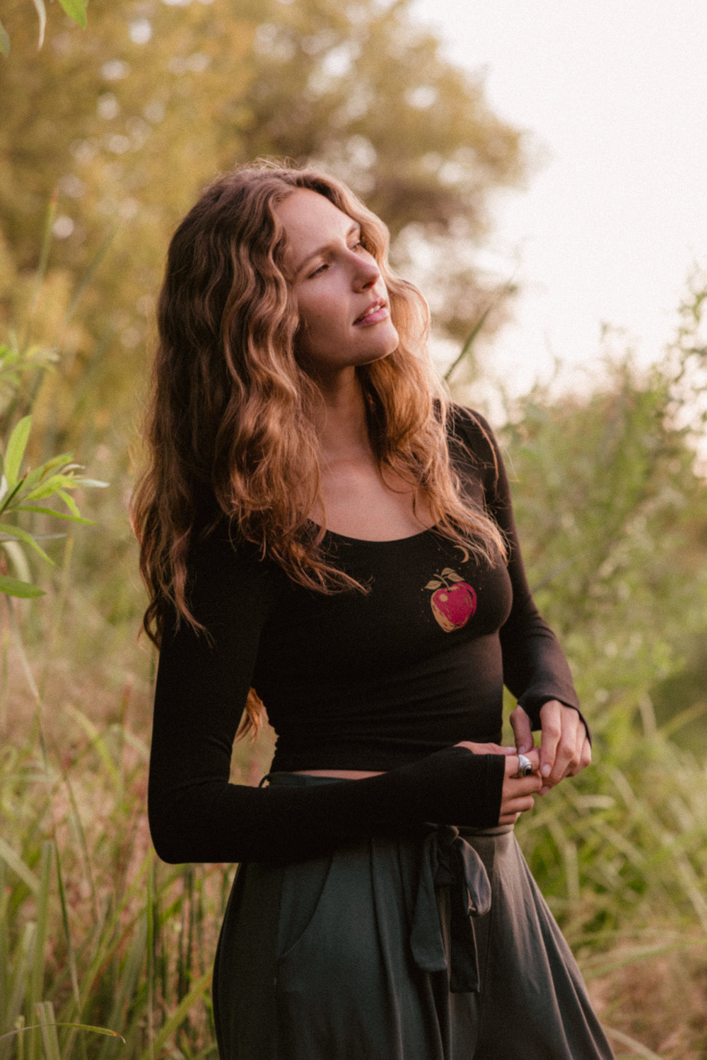 ✿ A bit longer than our OG bra tops to hit just below the waist, thumbholes for warm hands