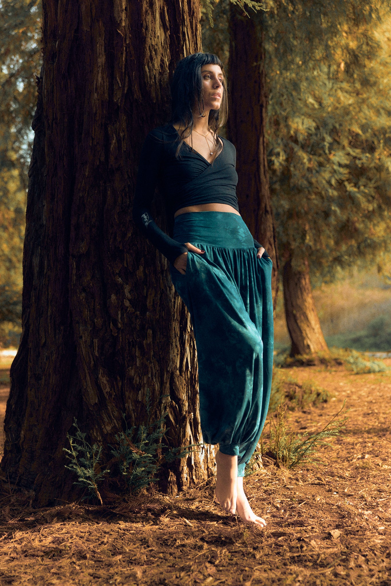 Every piece is made from premium, plant-based or naturally derived fibers selected for softness, breathability, and comfort. Many of our fabrics include TENCEL™ lyocell or other sustainable blends made in small batches. Each garment is dyed and finished in Los Angeles, giving it that signature Purusha feel that is buttery, lived in, and completely unique.