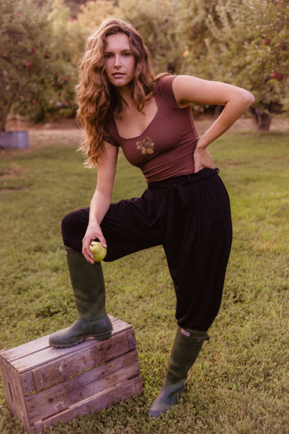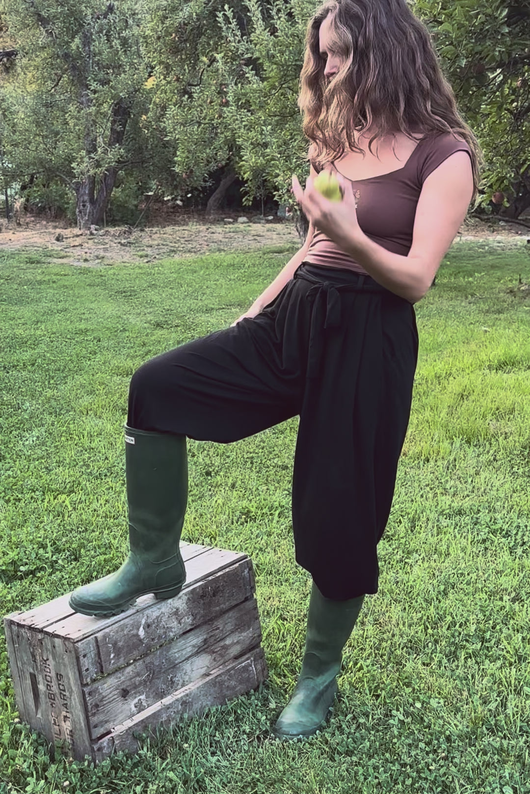 We use plant-based fabrics like TENCEL™ lyocell, ECOVERO™ viscose, and organic cotton, blended with Creora® bio-based spandex for gentle stretch. While the spandex still contains some petroleum, it’s partially derived from renewable sources—making it a better option than traditional synthetics. The result: soft, breathable, lower-impact clothing that feels as good as it is.