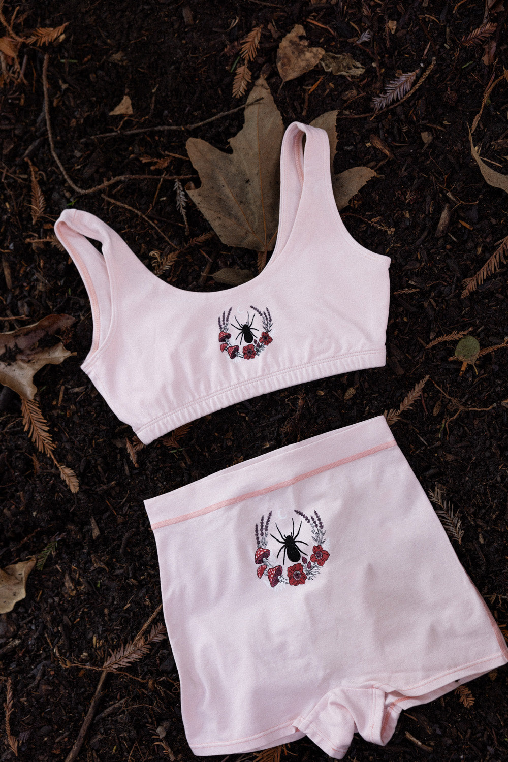We knit our fabrics in Los Angeles, work with a GOTS-certified dye house, and print exclusively with water-based inks. Every design is created in collaboration with female artists, and all of our production partners are small, family-owned studios located within a 25-mile radius of downtown LA, bringing our vision to life with care and integrity.