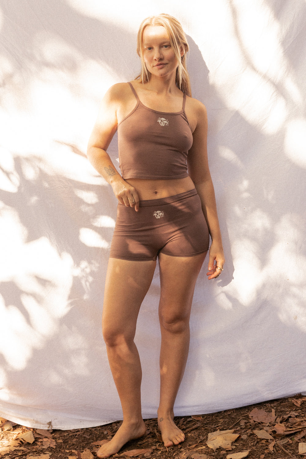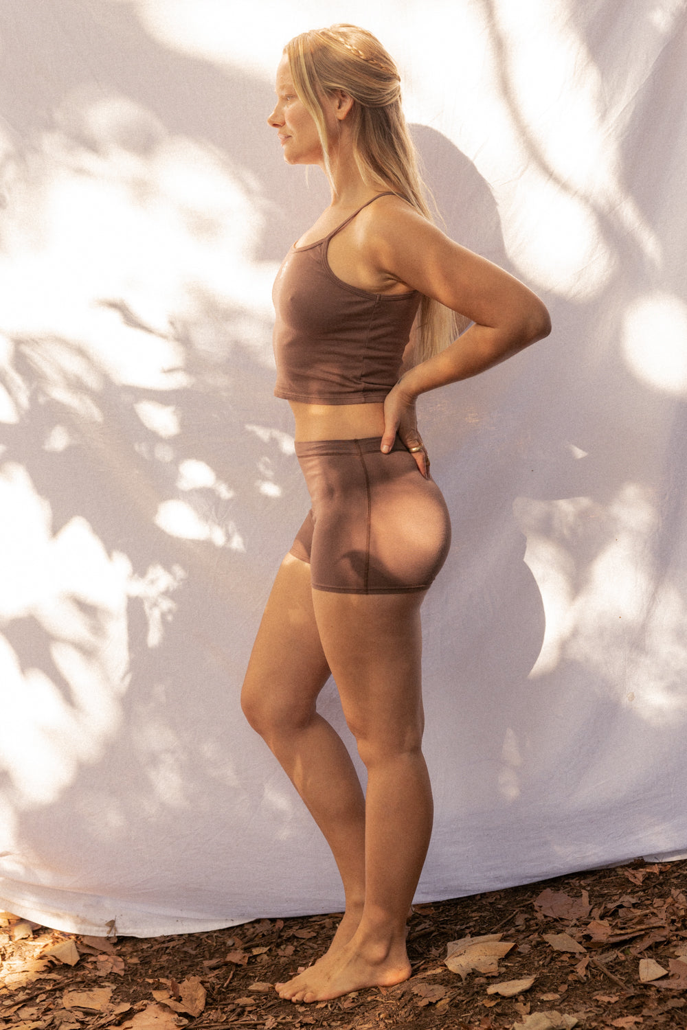 Every piece is made from premium, plant-based or naturally derived fibers selected for softness, breathability, and comfort. Many of our fabrics include TENCEL™ lyocell or other sustainable blends made in small batches. Each garment is dyed and finished in Los Angeles, giving it that signature Purusha feel that is buttery, lived in, and completely unique.