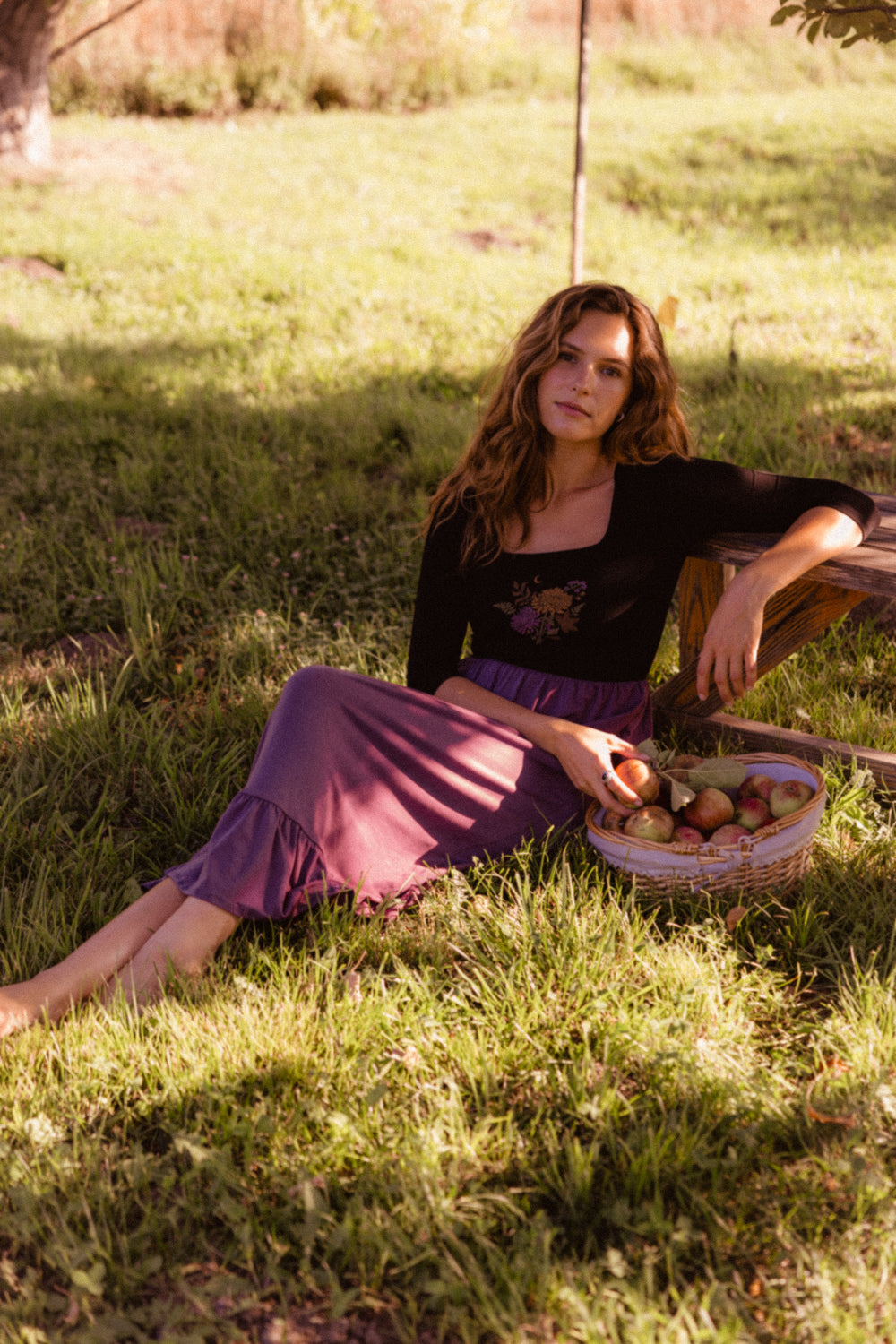 ✿ Charlie is wearing size S and is 5’8” with a 34” bust, 26.5” waist, and a 37” hip.