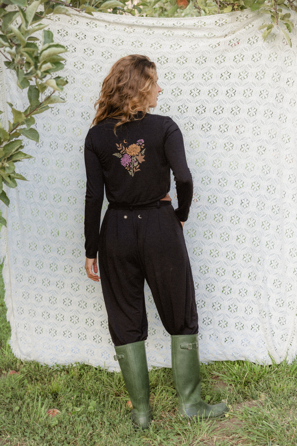 Each piece is ethically made in the USA, sewn in small batches by skilled workers earning fair wages. We prioritize safe, respectful working conditions and local production to ensure every garment reflects the values we stand for- quality, integrity, and care.