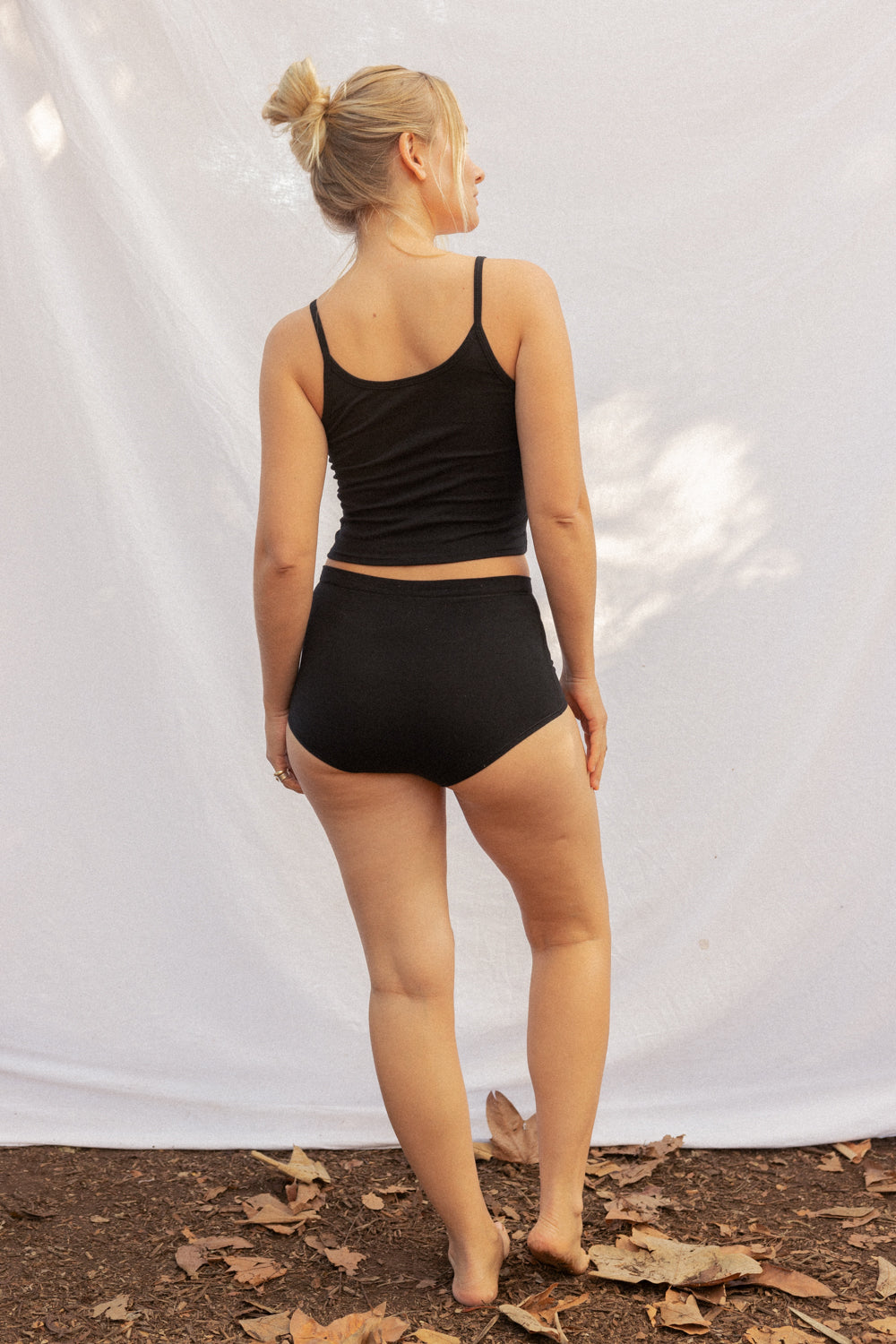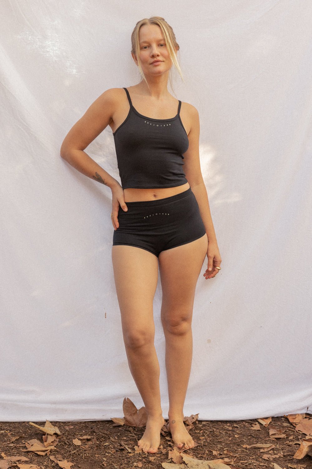 We use plant-based fabrics like TENCEL™ lyocell, ECOVERO™ viscose, and organic cotton, blended with Creora® bio-based spandex for gentle stretch. While the spandex still contains some petroleum, it’s partially derived from renewable sources—making it a better option than traditional synthetics. The result: soft, breathable, lower-impact clothing that feels as good as it is.