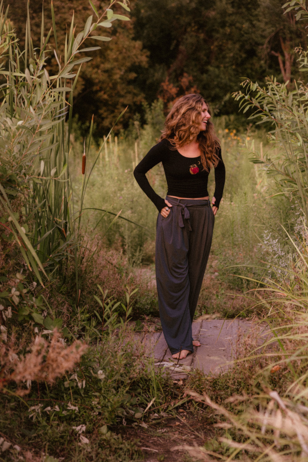 ✿ Loose, draping, slouchy, and pleated waist that can be worn high or low.