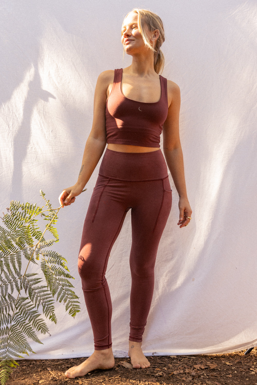 We use plant-based fabrics like TENCEL™ lyocell, ECOVERO™ viscose, and organic cotton, blended with Creora® bio-based spandex for gentle stretch. While the spandex still contains some petroleum, it’s partially derived from renewable sources—making it a better option than traditional synthetics. The result: soft, breathable, lower-impact clothing that feels as good as it is.