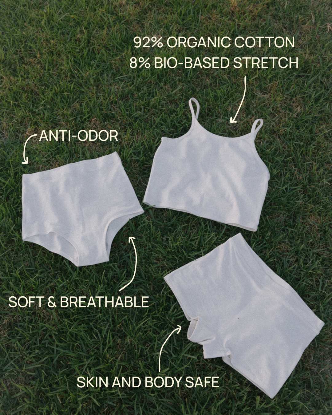 Organic cotton is grown without toxic pesticides, synthetic fertilizers, or GMO seeds—protecting your skin and the planet. It keeps its natural softness and breathability, feels purer against sensitive skin, and supports healthier soil and fairer farming. Cleaner for your body, gentler on the Earth.
