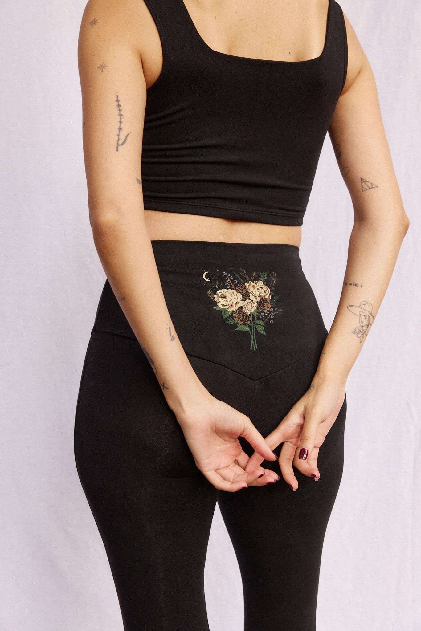 Our pocket leggings have a 27-inch inseam that comfortably stretches to around 29 inches.
