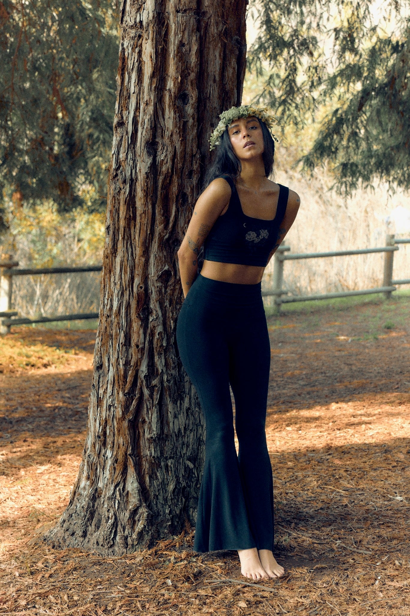 We use plant-based fabrics like TENCEL™ lyocell, ECOVERO™ viscose, and organic cotton, blended with Creora® bio-based spandex for gentle stretch. While the spandex still contains some petroleum, it’s partially derived from renewable sources—making it a better option than traditional synthetics. The result: soft, breathable, lower-impact clothing that feels as good as it is.
